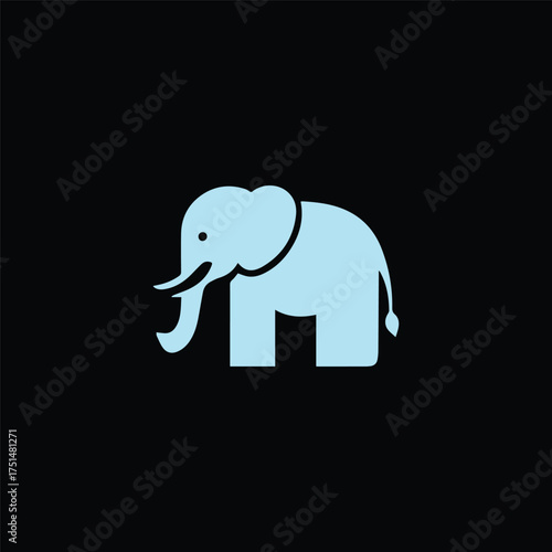 Silhouette style vector minimal elephant logo design icon in black color, simple bold line art illustration, creative branding element for wildlife, nature, strength, merchandise, digital projects, mo