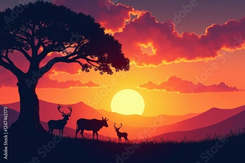 Silhouetted animals amidst tree, animals, landscape, greenspace