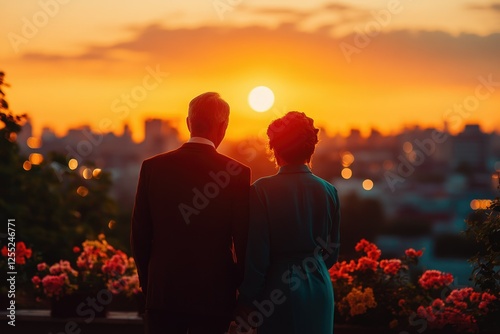 sunset, couple, silhouette, city, skyline, love, romance, golden hour, twilight, city landscape, human relationships, togetherness, backview, hand in hand, affection, urban, romantic, evening, beautiful, scenic, view, panorama, horizon, dusk, shadow, light, colours, warm, peaceful, serene, calm, flower, plant, geranium, red flower