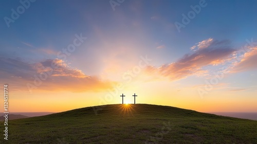 silhouetted, cross, standing, breathtaking, sunset, landscape, nature, sky, cloud, hill, cross, silhouette, field, horizon, dusk, dawn, peaceful, serene, tranquil, spiritual, religion, faith, easter, christianity, scenery, scenic, atmosphere, dramatic, idylli, rural, countryside, meadow, light, sun, shadow, contrast, minimalist, simple, geometric, abstract, symmetry, pattern, texture, mood, inspire, contemplative, devotion, worship