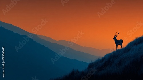 Silhouetted Deer Watching Over Majestic Sunset Valley