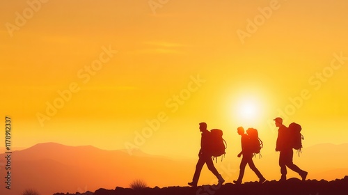 hiker, sunset, silhouette, mountain, backpack, adventure, travel, group, nature, scenery, exploration, trekking, high-coloured, horizon, freedom, journey, landscape, golden hour, walking, activity, physical fitness, scenic view, peaceful, teamwork, excitement, recreation, healthy lifestyle, environment