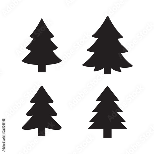 Silhouettes of Evergreen Trees in Various Shapes