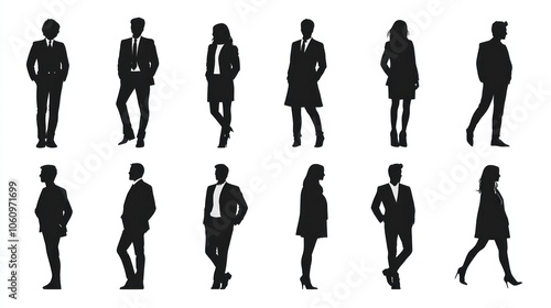 silhouette, people, business, attire, formal, professional, man, woman, suit, dress, pose, standing, walking, graphic, design, vector, illustration, black, white, minimalism, abstract, style, fashion, corporate, office, work, career, conference, meeting, presentation, team, group, elegant, modern, contemporary, simple, clean, art, concept, symbol, icon, human, figure