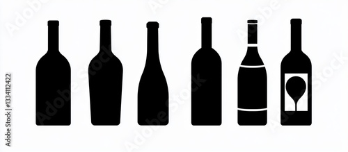 silhouette, wine, bottle, alcohol, drink, beverage, illustration, graphic, design, black, white, vector, empty, label, logotype, collection, set, image, modern, simple, wine shop, eatery, party, celebration, bar, drinking, design element, background, graphic design, wine list