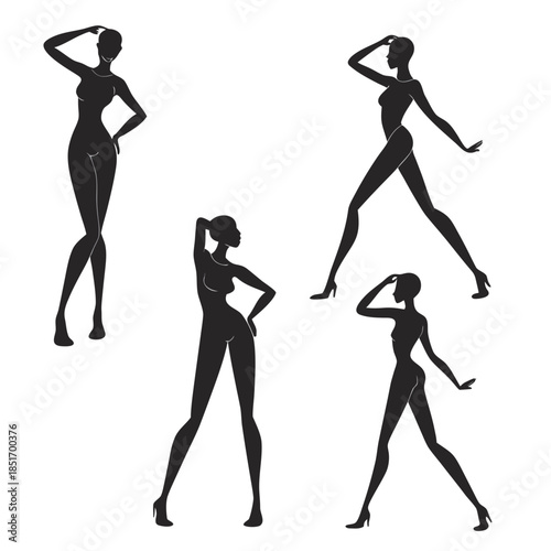 silhouette, woman, pose, elegance, grace, art, figure, black-and-white