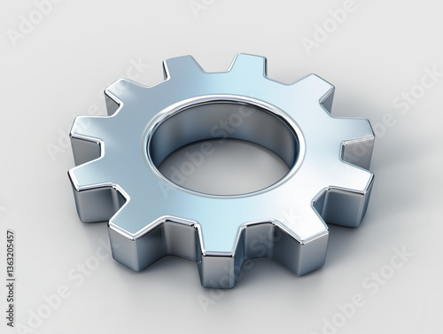 Silver gear with mechanical design on a light background