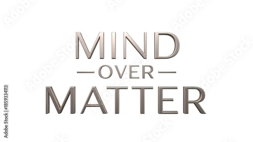 Silver metallic 3 D text mind over matter on black background lettering typography