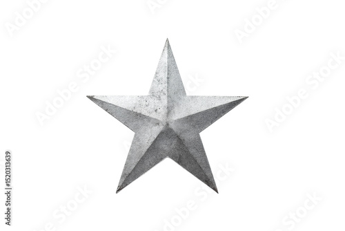 Silver metallic star on black background: textured five-pointed shape in isolation, cut out