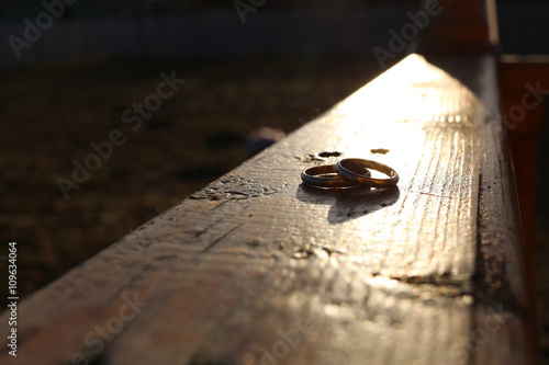 Silver wedding rings at sunset