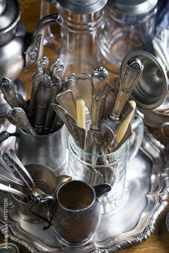 Silverware on an old background.