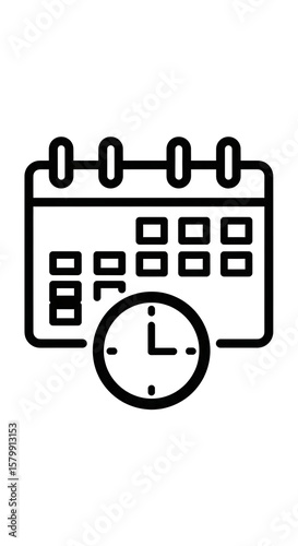 Simple Black and White Calendar and Clock Icon Representing Time Management.