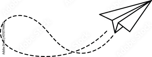 Simple black and white illustration of a paper airplane in flight on transparent background