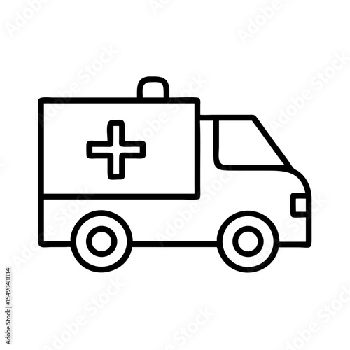 Simple Black and White Outline of an Ambulance Emergency Vehicle Icon