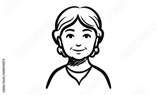 Simple black and white sketch of a smiling young male face with medium-length hair. Vector retro hand drawn illustration