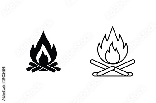 balefire, fire, campfire, icon, vector, illustration, design, graphic, symbol, flames, wood, burning, black, white, isolated, outline, minimalist, camping, nature, heat, energy, warm, logotype, element, silhouette, signs, danger, log