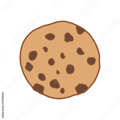 Simple chocolate chip cookie cartoon vector. Isolated hand drawn style cookie clipart