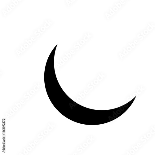 Simple crescent moon silhouette, black on a pure white background, Black Crescent Moon Icon Isolated on White Background - Minimalist Vector Illustration