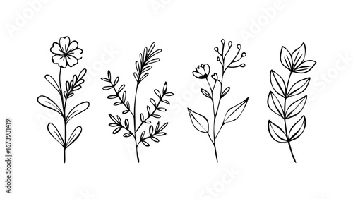 floral, flower, doodle, simple, line art, botanical, nature, minimalist, elegant, delicate, artistic, graphic, illustration, design element, decorative, organic, growth, bloom, stem, leaf, outline, clean, modern
