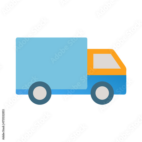 truck, delivery, transportation, vehicle, automobile, shipping, cargo, freight, logistic, commercial, service, graphic, icon, flat, design, illustration, minimalist, isolated, colours, colourful, sky blue, mustard, grey, blue, tire, wheel, panel, container, box, shape, half face, profile, monochrome, style, simple, business, speed, movement, transport, industry, vector
