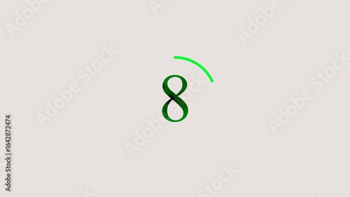Simple green number eight graphic with a green arc on a pale background for design