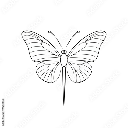 Simple Line Art Drawing of a Butterfly with Detailed Wings and Antennae