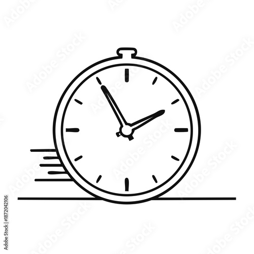 Simple line art illustration of fast moving clock showing time, time management and efficiency for schedule and deadline themes, black and white drawing