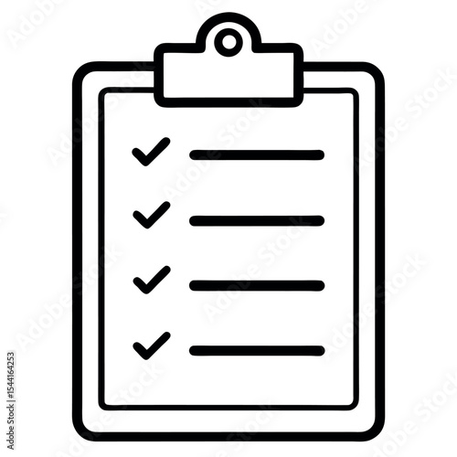 Simple line vector icon of a clipboard with a checklist. Ideal for task management, productivity apps, to-do lists, planning tools, scheduling, and office or business interfaces.