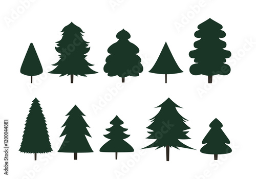 Simple minimal style evergreen trees vector illustration set. Cute hand drawn winter holiday Christmas trees graphic elements for cards , decor, or social media.