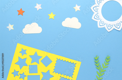 star, cloud, paper, yellow, flat, white, many-coloured, plain, blue, cut, ordinary, pattern, simple, minimalism, abstract, hand-made, creativity, sky, frame, cloud, illustration, symbol