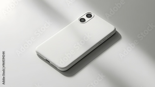 Simple Phone Case: A plain, white phone case with a minimalist design, lying flat on a white background, with crisp shadows for definition.