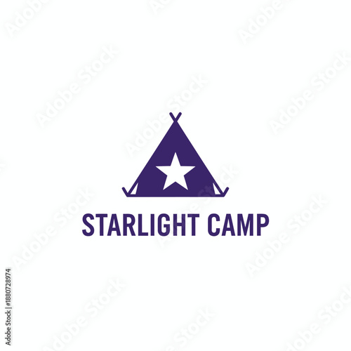 Simple tent silhouette with star icon for outdoor adventure or camping site branding titled Starlight Camp minimalist travel logo.