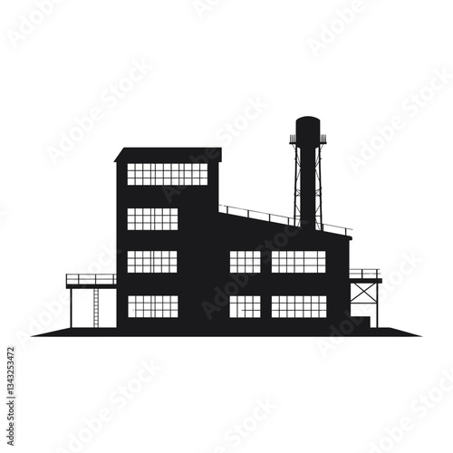 industrial building, industrial design, architecture, illustration, transparent, water tower, industrial, silhouette, building, isolated, diagram, factory, vintage, design, facades, simple, vector, black, flats, front, tower, urban, water, white, view