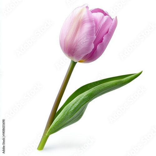 tulip, flower, purple, pink, spring, blossom, bloom, green, leaf, isolated, white background, single flower, floral, botanical, nature, plant, photo, macro, closeup, beautiful, delicate, elegant, gentle, soft, light, fresh, vibrant, colours, stem, studio shot, image, spring flower, beautiful flower