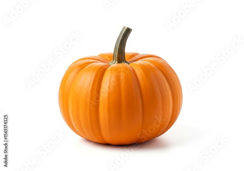 Single Orange Pumpkin on White Background - A vibrant orange pumpkin sits on a pure white background, perfect for autumnal themes and fall harvest imagery