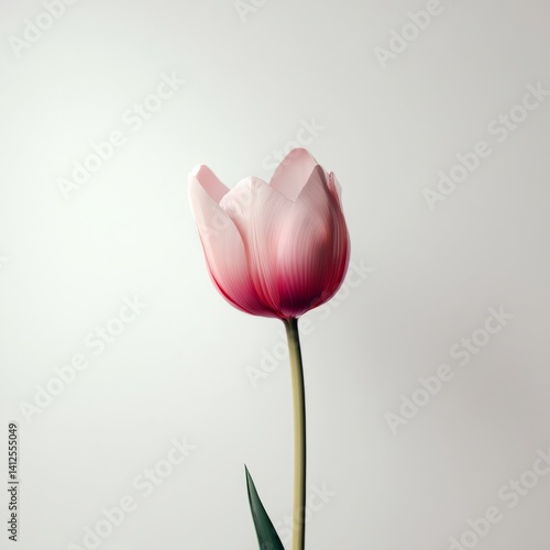 Single Pink Tulip with Delicate Petals on Gray Background