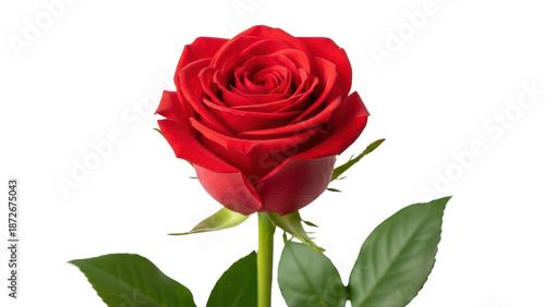 rose, red, flower, bloom, blossom, green, leaf, plant, nature, love, romance, valentine, anniversary, wedding, gift, beauty, fresh, natural, floral, elegant, stem, delicate, vibrant, spring, summer, celebration, website, banner, marketing, presentation, background, studio, single, isolated, closeup, macro, bright, high-coloured