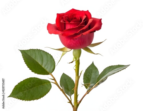 red rose, single flower, green leaf, white background, morning light, floral arrangement, romance, love, february 14, botanical, stem, nature, beauty, bloom, fresh, delicate, gift, plant, flora, gardening, bouquet, minimalist, serenity, fresh flower, isolated, floral pattern