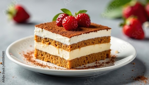 Single serving of tiramisu, showcasing texture and layers , isolated, delicious