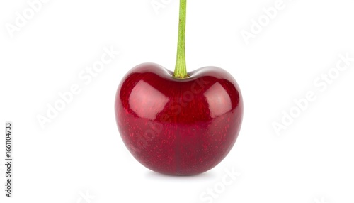 cherry, red, fruit, whole, single, ripe, juicy, fresh, organic, healthy, food, nature, isolated, closeup, macro, stem, glossy, smooth, vibrant, colours, bright, honed, blood-red, delicious, sweet, summer, vitamin, alimentary, natural, studio, still life, freshness, edible