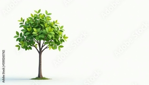 Single young tree, delicate leaves, white backdrop, nature, backdrop
