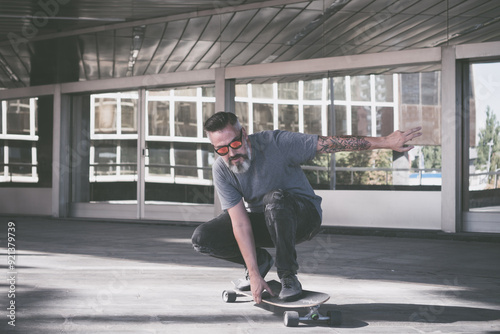 tattoo, practice, ride, balance, hobby, recreation, training, action, hipster, male, sunglasses, sport, boarding, middle-aged, skate, sk8, man, active, beard, urban, skater, lifestyle, skateboard, style, skateboarding, activity, board, skateboarder
