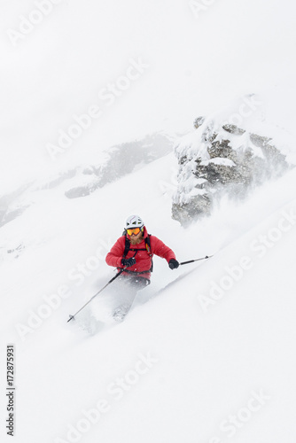 freeride, skiing, powder snow, extreme sport, copy space, winter, turn, tun, sport, splash, speed, snow, slope, skier, ski, sharp, rock, mountain, motion, man, male, freedom, free, fearless, fast, extreme, equipment, downhill, day, cold, challenge, adventure, adult, active, caucasian, person, people, adult, 30s, grown-up