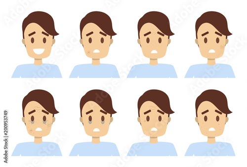 skin, dry, set, oily, face, isolated, illustration, beauty, acne, young, background, white, health, vector, care, problem, beautiful, skincare, facial, female, man, healthy, graphic, concept, clean, make-up, character, treatment, cosmetic, sad, problem, dermatology, pimple, rash, pretty, design, dark, boy, teenage, circle, avatar, infographic, people, art, person, portrait, caucasian, cute, attractive