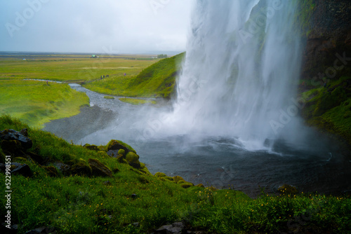 iceland, reykjavik, waterfall, fall, nature, grass, landscape, waterfall, sky, mist