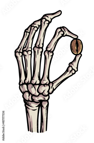 retro, dark, drink, coffee bean, bean, hot drink, hand, skull, bone, skeleton, devil, evil, dead, death, ghost, monster, people, horror, creature, mystery, mysterious, halloween, zombie, grim