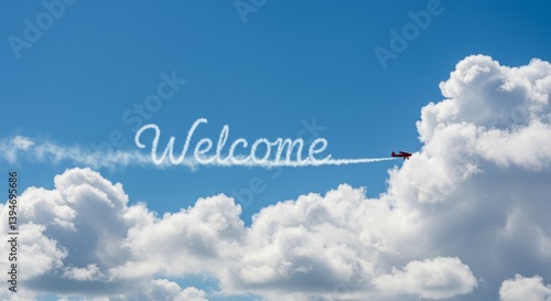welcome, aeroplane, cloud, sky, greeting, arrival, travel, fly, message, freedom