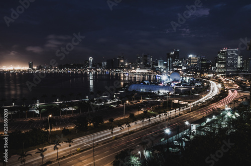 Skyline of capital city Luanda and its seaside during the night, Angola, Africa
