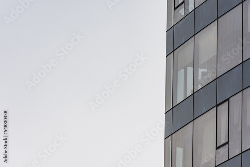 Skyscraper development concept. Contemporary real estate building office. High financial construction full of windows.