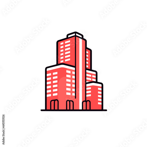 Skyscraper vector icon in minimalistic, black and red line work, japan web